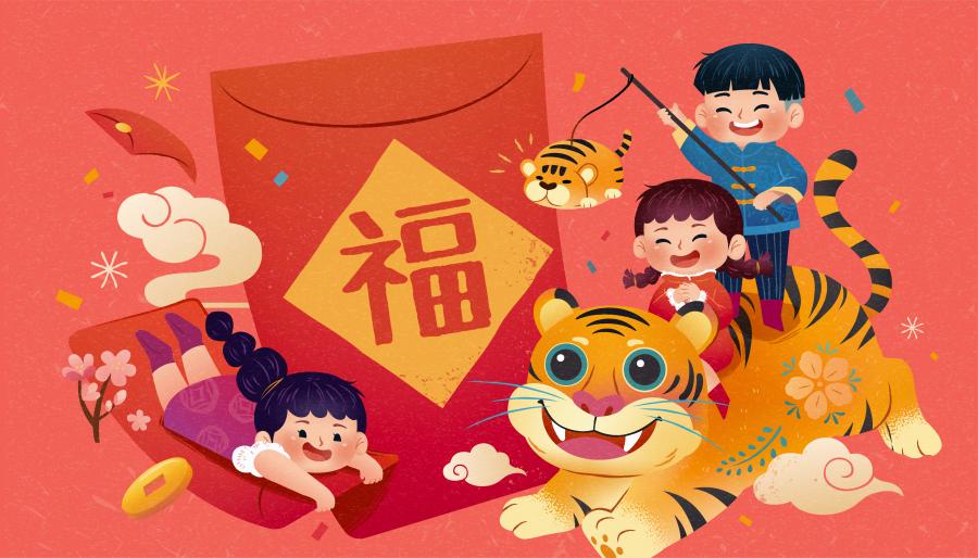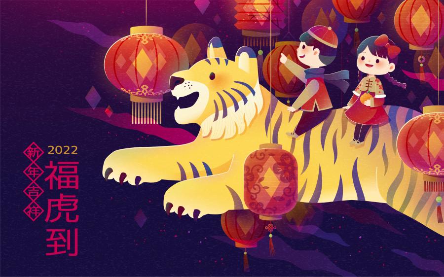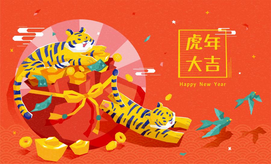 11款2022虎年新年春节拜年喜庆中国风传统插画海报背景ai矢量设计素材