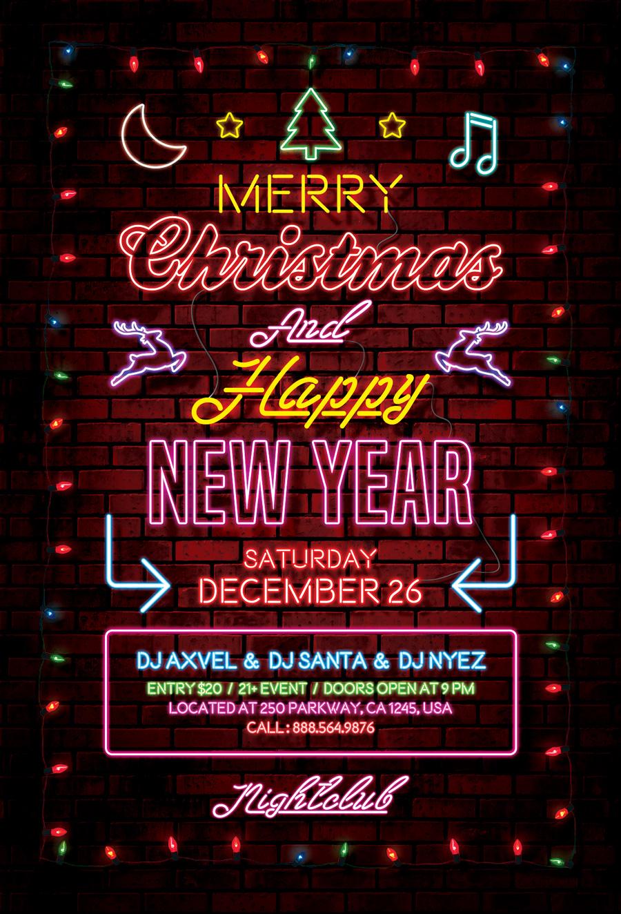 霓虹灯效果圣诞节宣传海报PSD分层素材