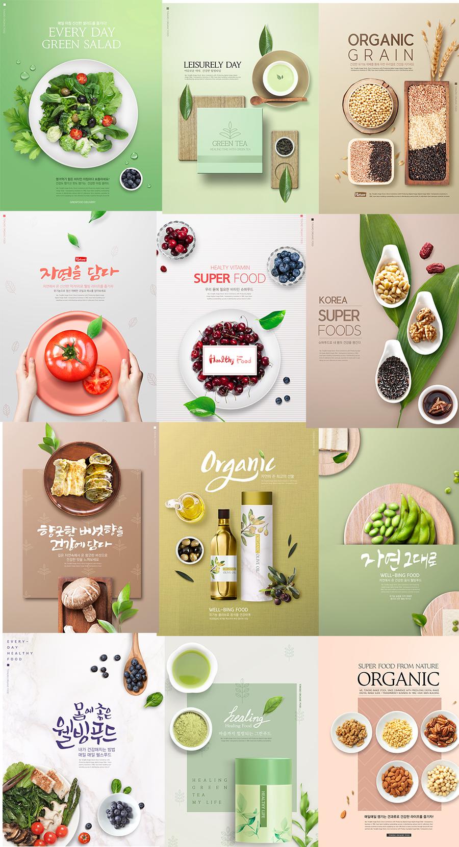 13款高档餐饮美食海报模板水果蔬菜厨房餐厅布景墙画PSD分层设计素材