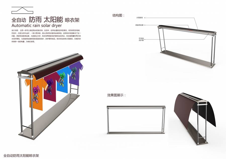 全自动防雨太阳能晾衣架设计