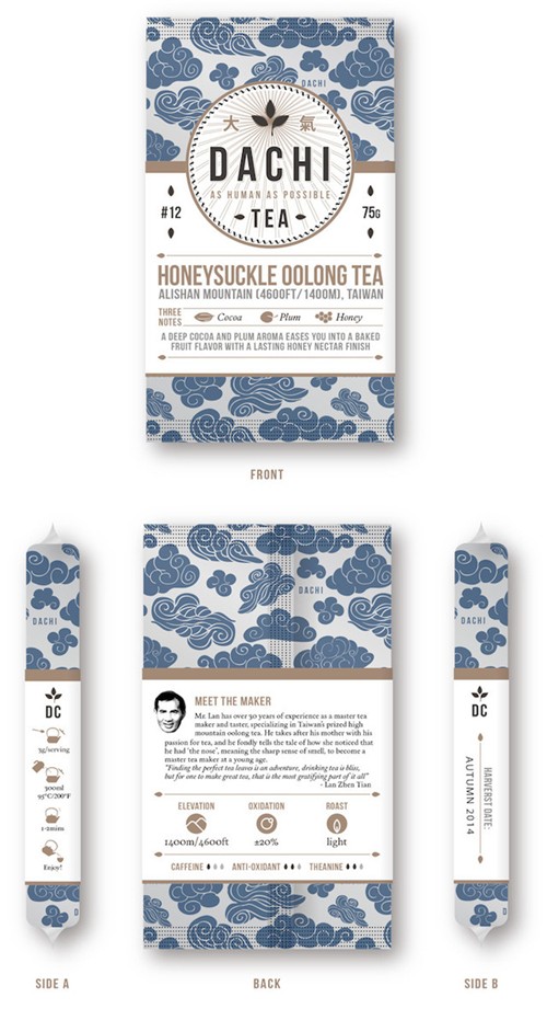 Kickstarter上线了一款茶叶设计作品,是两个曾在台湾学习中文的外国人Nicholas Palumbo与Simon George Thomas做的。两人在台湾时对当地的茶叶产生了兴趣,于是跑去深山里寻找台湾茶叶。之后两人在 4 位茶叶专家的协助下,推出了自有品牌的茶叶Dachi Tea。