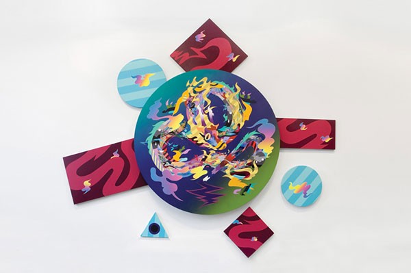 浦友松山1976年出生在日本,是一个基于纽约的艺术家,专攻创建大规模的绘画和雕塑,擅长使用明亮,充满活力的颜色。他的独立展览在纽约、旧金山、华盛顿、卢森堡、大阪、东京和香港等多地举办。他的作品也被丽都酒店集团(NV)和皇室(迪拜、阿联酋)标准酒店收藏,曾与伯顿滑雪板、耐克、李维斯等品牌合作。