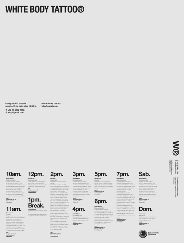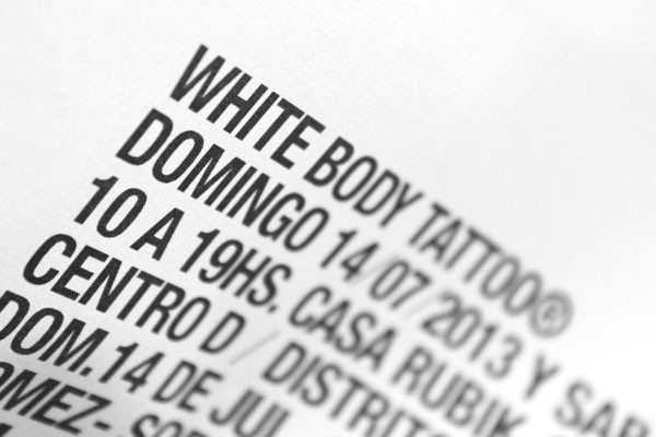 empatía是来自布宜诺斯艾利斯的一间小设计工作室。为客户打造魅力品牌生活,追求的最高的设计品质。White body tattoo是在墨西哥举办的一个纹身展览。来自本地和国际的30多个艺术家,开幕酒会放映一些特色的纪录片、音乐、摄影和纹身图片。我们的主要任务是创建活动的宣传海报及视觉形象,使用文字排版和图像融合在事件中,以表现强大的视觉语言。