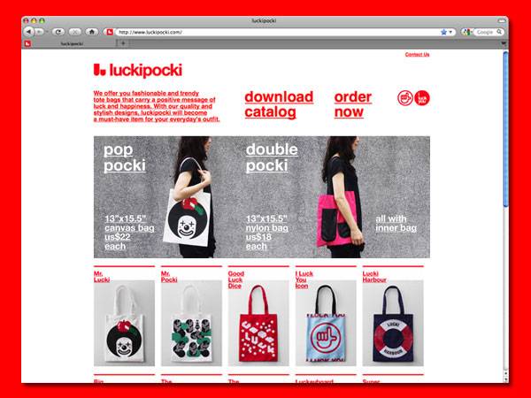 香港潮牌Luckipocki主要以手提袋等产品为特色,主要以在线销售的模式进行经营,为了让产品的配送过程能够吸引更多的人,同时又很好地传达出品牌的时髦、个性、简约明快的特征。于是设计师Blow设计出这样一个醒目的包装袋,和吊牌与产品的搭配可谓天衣无缝,让包装袋本身也能成为“买椟还珠一族”的心头所好。