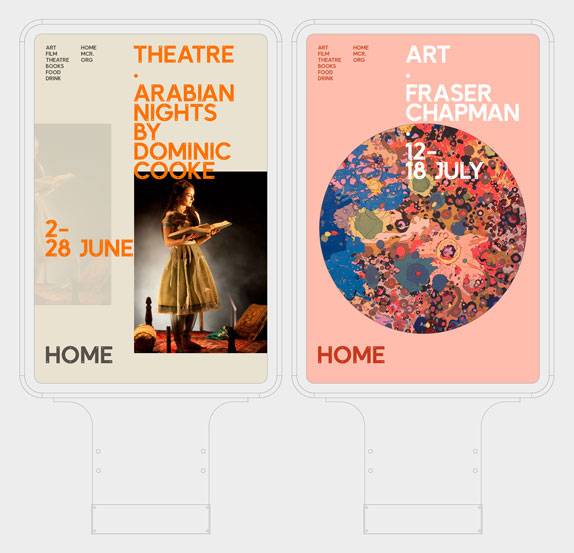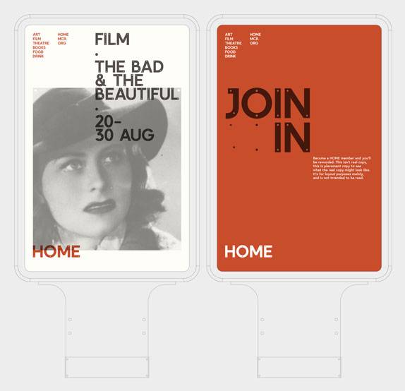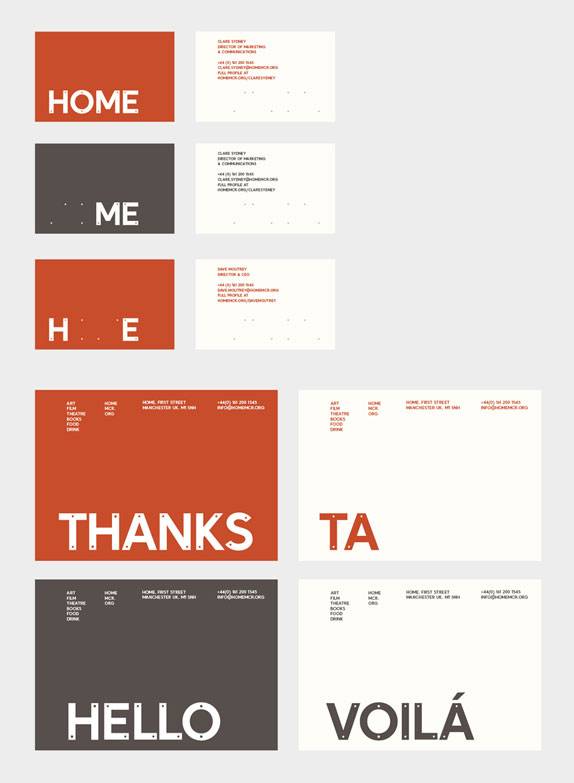 2012年4月,国际现代视觉艺术和独立电影公司cornerhouse与Library Theatre Company合并为组成新机构“HOME”。品牌形象由o street和Creative Concern两位共同完成。