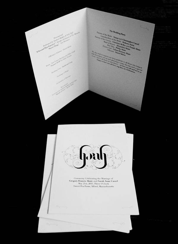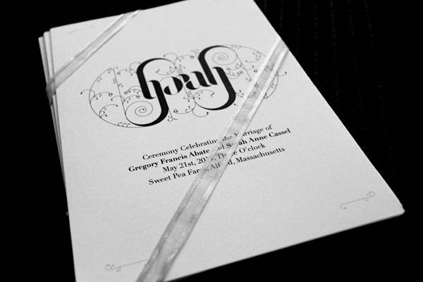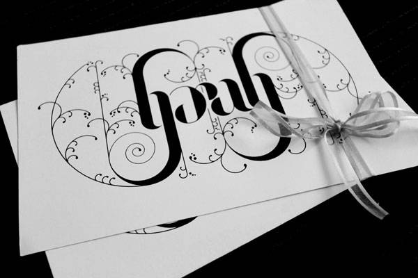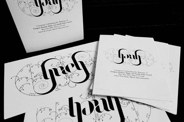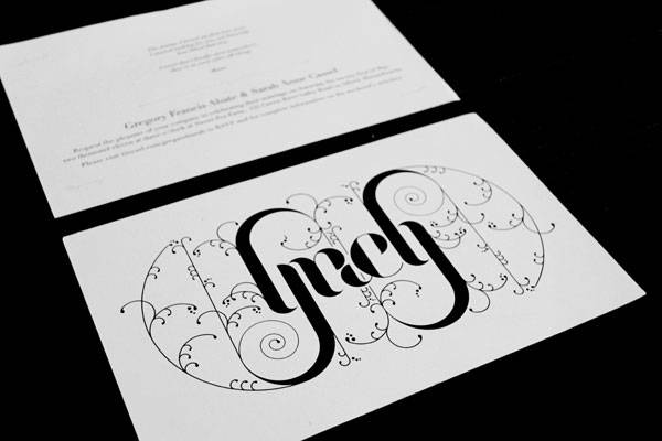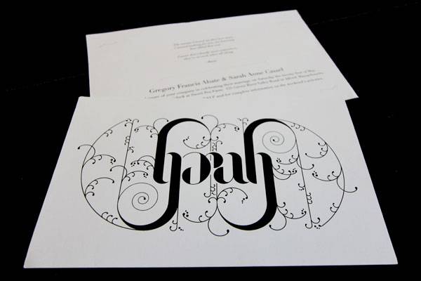 Ana Gomez是纽约一位自由设计师,2003年开设了自己的设计工作室,热爱版式设计、插画设计等,2009年成为纽约插画家协会会员,同时也担任一间艺术类俱乐部的艺术总监。下面是为Greg和Sarah设计的婚礼邀请贴。婚姻意味着两个独立生活的人,将共同创建和分享。因此这个创意,从一个方向阅读是“Greg”,翻转阅读时变成“Sarah”。