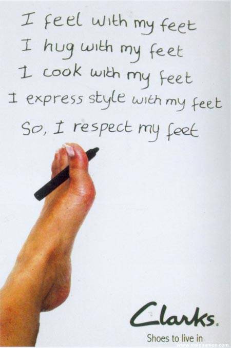 广告奖----CLARKS SHOES BRIEF: Demonstrate how a positive portrayal of disability can enhance the Clarks brand 创意简报:如何运用一个关于残疾而又带有积极意义的画面来提升 Clarks 这个鞋类品牌的形象