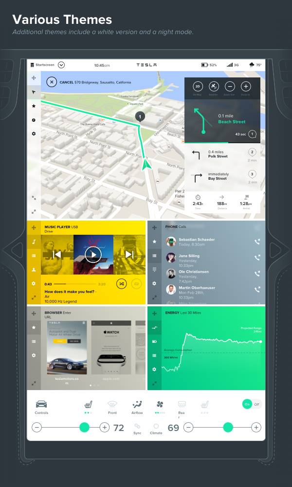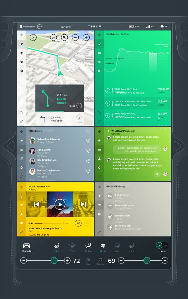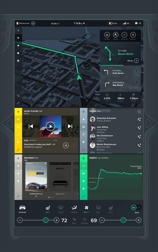 Tesla特斯拉汽车车载界面设计