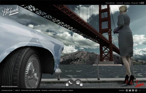 这是一个为向Sir Alfred Hitchcock and Mr.Christian Louboutin致敬数字体验网站 。网站以找到找到隐藏的Hitchcock和解开Louboutin 鞋子的秘密为主题。