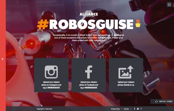 这是乐高大电影的网站,用户被邀请加入超级联盟,创建图片赢得乐高奖品。