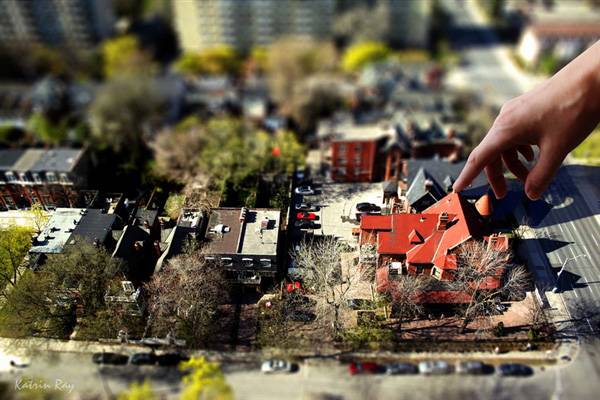用移轴镜头拍摄城市景观,让真实的房子、森林、湖泊在你掌下仿佛玩具一般,镜头下的你仿佛成了《格列佛游记》中的巨人。加拿大女摄影师Katrin Shumakov就酷爱这种玩法,这组名为《Toy-ronto》的作品,是通过移轴摄影(Tilt-shift photography)技术,将多伦多的城市风景转化成好似玩具模型的世界。