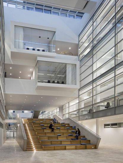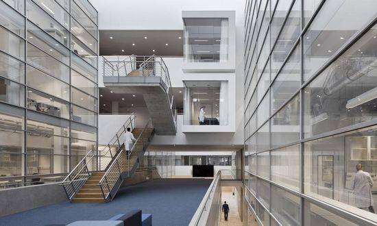 研究脑部、行为和新陈代谢的国际研究中心在吕贝克大学,并为320名科学家、医生和学生提供了大脑、激素和行为领域研究的空间。该新建筑包括首层5400平方米的生物医学实验室、睡眠实验室和三个不同部门的葡萄糖研究单元,包括神经医学部门、神经内分泌学部门和药理学部门。 CBBM长方形体量有其特有的、水平的立面和谐地融入到学院校园,为三个部门创建了研究中心。透明的入口区域朝向Marie-Curie-Strabe,为多功能研讨会和活动区域提供视野。演讲、研讨会、实验课以及座谈会与科学会议将在这里举行。