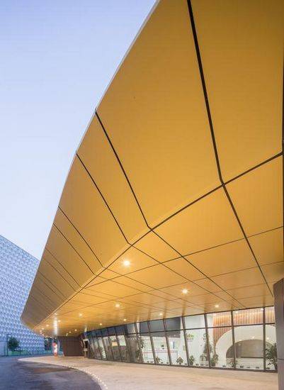 上汽通用展馆(简称通用馆)是2010年上海世博会展馆里的其中之一,提供先进的科技向人们展示城市的未来愿景。通用馆的理念是根据汽车零部件形状设计的蜿蜒螺旋形的形体,象征着汽车行业的光明未来。铝在汽车制造业中是最常见的材质,并且在施工过程中要对4000多块不规则的铝片进行BIM和3D激光扫描技术的定位。通用馆最初建的只是临时建筑,因此,一些构成要素如钢梁和LED屏幕可在技术上回收利用,不是使用全焊接结构,而使用“螺栓”加“点焊”技术,以确保可回收建筑材料的综合利用。 世博会结束后,上海市政府终于决定将通用馆改造为上海儿童艺术剧院,将包括共有1088个座位的礼堂、300个座位的影院、一个儿童培训中心和其他设施。与此同时,这一临时建筑被改造成永久性的新功能需求时是由同一团队设计的。一楼的部分开放空间是小影院和儿童活动中心。利用原中间层,为少年儿童训练中心扩大办公空间,原来的空间已更加充分地探索和重新安置。把主展览区改造成中央影院且是最难的一部分,484个圆形座位被1088个座位的礼堂取代及原来的可调屏幕被拆除。为了添加走道和辅助区域,主展区的原始直径从55米缩到了35米。