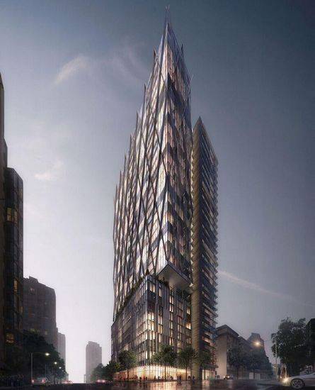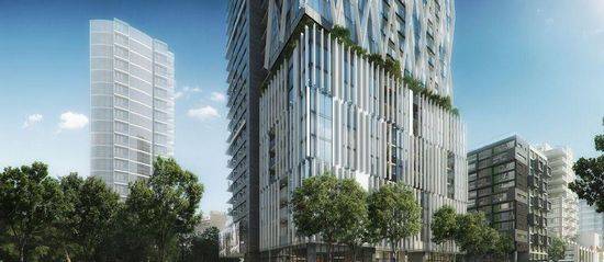 GBL建筑师设计的“8X大厦”已经获得了在温哥华的建造批准,将在秋天开始动工。该场址位于查理德港湾的西部角落和温哥华耶鲁镇 的Helmcken街附近。该建筑设计理念结合了周边三个区域的背景环境:埃默里·巴恩斯公园,场址两侧的西部边缘;附近的街道;耶鲁镇的天际线,显示了广泛的建筑风格。 35层高、365000平方英尺(33910平方米)大厦的外观带有相交叉的隐藏式的脊柱。该建筑的基地还挤压出了附近体量规模类似的布鲁克兰法院。公园边界的体量是上下两层高,从而使得这三个体量分别以自己本身独特的特点来回应场址的背景环境。