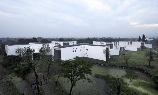 位于杭州中部西溪西部湿地,西溪艺术家俱乐部组织作为一个村庄结构五建设单位,800平方米为杭州艺术家和设计师的工作室。 会所由5组单元构成,每组800㎡小小的单元的偶一个大Y型和两个小Y型体谅组合而成,小Y性的尺度恰为大Y型长、宽、高各缩小一半。面对湿地采用6m×6m和3m×3m的大尺度无框景窗,获取最大的自然接触面, 形成了既遵从生态秩序又有自然变异功能的离散式树桩聚落结构。