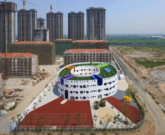 循环幼儿园位于天津,创建了一个勤奋的公寓块的环境和丰富多彩的教育斗兽场之间的鲜明对比。顶层允许较小的结构作为露天游乐场的屋顶花园, 底层有朝外的窗户和个大舞台上的多功能会议区。每个学生都能享受美好的视野、新鲜空气和访问开放的空间。