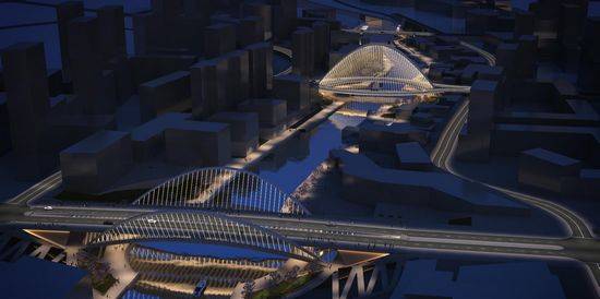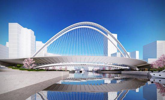 Santiago Calatrava 已被委托在武汉市东部为华山设计三座钢结构桥梁,名分别为Xihu桥、Xianbi桥、Lincong桥,跨越了1.5公里长的华山市新长江运河,为行人、自行车者和车辆提供了过江的道路。