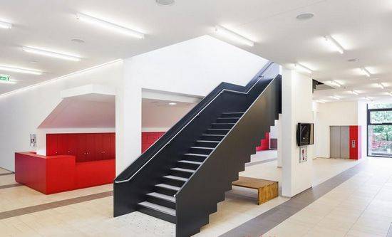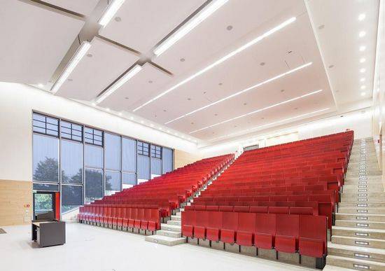 在亚琛工业大学大Audimax礼堂的教室和通用房间有待翻新。因此,在校园中心建立一个小礼堂作为高等教育现代化项目(HMoP)。礼堂中心经过两年的开发和建设于2012年9月完成建设。 礼堂中心三层半楼层的部分临近街道而四层半楼层的部分挨着停车场。在一层有两个入口在地下室有一个侧门口。在一楼有一个玻璃橱窗的咖啡馆,临近南侧三角广场的零食和汽水自动贩卖机。