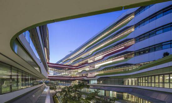新加坡科技设计大学教学楼的第1阶段是由UNStudio的和DP建筑师事务所设计。经过近5年以来的设计构思,新加坡大学的技术和设计的学术校园已正式开业。该项目由UNStudio和DP建筑师事务所合作设计。他们是该教学楼第一阶段的建筑师。为了体现该大学的重点是可持续设计,并确保舒适的学习环境,环境可持续性被内置到校园设计中,特别是通过被动式建筑设计。建筑几何通过户外聚会空间如内部庭院,创建了一个“理想风流”的风走廊。树阴人行道也服务于围绕大学的各外循环路线,鼓励步行,低碳校园。