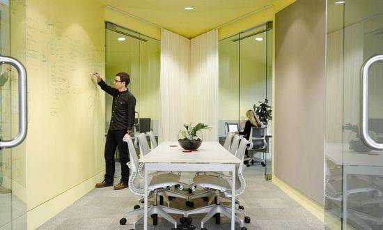 这个FINE Design Group新的工作环境体现创意机构的节能性和协作性。为了创建新的空间,Boora Architects运用暴露的钢结构、混凝土地板,形成一个5,475平方英尺的原壳空间,拥有光照充足的开阔空间。结果是一个阁楼式的开放式办公环境,拥有一种轻松的感觉。在开放的空间内,关键要素定义不同的项目区。