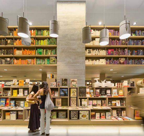 Saraiva书店被构想成一个公共空间和图书馆的杂交体,一个集宴乐、休闲、专注和休憩活动于一体的场所。其建筑既简洁又不乏吸引力,欲消隐于书本之后以使人好奇它的容量。21世纪空间、书籍和新传媒物分据着书架,对书店内的布局灵活度提出了高要求。为了在组织好这般庞大信息的同时避免创造出单调乏味的商店,设计师所面临的挑战无异于鼓励人们在一个温暖舒适的氛围中流连、阅读和交流。