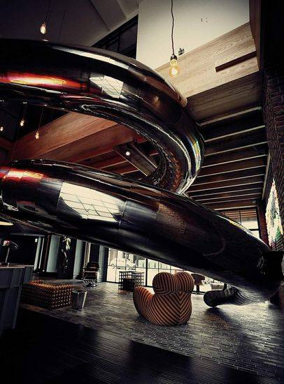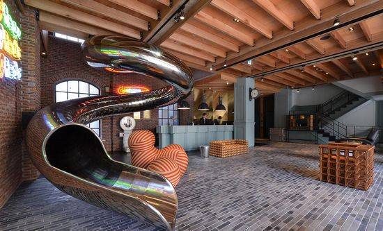 红点文旅原来35年的银河酒店,2014年进行了改建。因此,设计团队开始对该旅店所在区进行细微的研究。他们发现老化的街区充满了优质原材料的典雅建筑。所以,他们决定赋予该旅店新的生命,旅店应结合任务给建筑创建一个重要的角色。