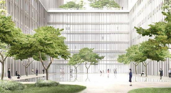 Amorepacific 化妆品公司总部正在韩国首尔进行现场施工。它由david chipperfield的柏林设计工作室所设计,该公司自己的艺术博物馆APMA也包含其中。总部坐落在城市中心,靠近以前的美国军事禁区,这里将被转变成一个公共公园和国际商务区。建筑西北侧毗邻的hangangro大道在首尔是一条富有历史意义的街道,目前仍是城市的主轴线。