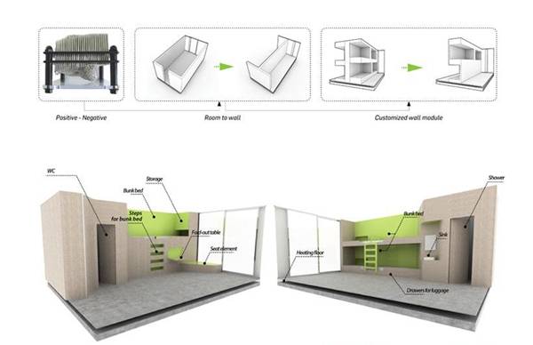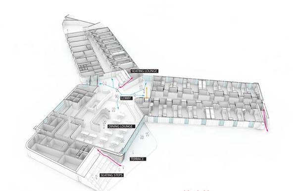 基于功能性和代表性的设计目的,国际建筑事务所LAVA设计了拜罗伊特青年旅舍,整个建筑的形态成“ Y ”字型。该方案考虑到年轻一代的旅行者,旨在提供一个设计时髦、有特性的住所。这个住所不仅仅是只提供一张干净的床和洗浴的地方,而且是可以通过网络联系的社区。最重要的是,三个不同方向的体块围绕着中部的中厅布置,有利于循环流通。中厅连接了每个走廊的末端、外部运动场和花园。青年旅舍位于德国,设计了180张床位,计划2015年初开始建设。