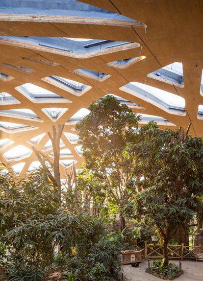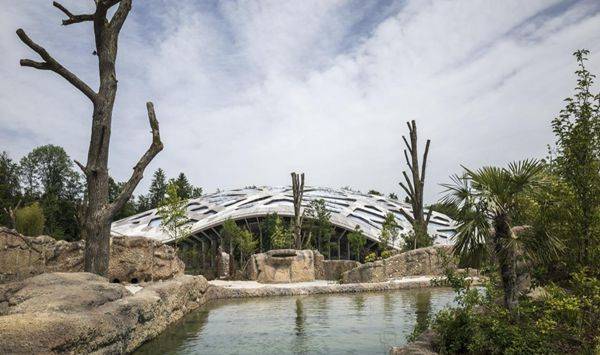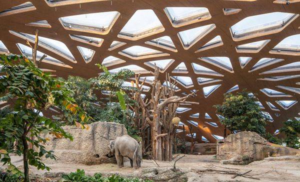 苏黎世动物园新建的大象馆成为了新设计的Kaeng Krachan大象公园里的一个新景观。 新象舍的特点是采用了明显的木质屋顶,与周围景观融合在一起,是一个自由形状的浅壳结构。屋顶建成了像迷宫一般的透明结构,与周围森林建立起了一种有机关系。在室内,屋顶能够展现其大气层效应:就如同阳光穿过树木一样,这里是阳光透过复杂的屋顶结构经过滤后产生不断变化的光线环境。