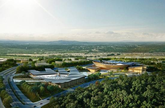 西班牙Rafael de La-Hoz工作室和中国设计研究院哈尔滨工业大学建筑设计研究院((ADRI-HIT)共同设计的眉山文化中心项目方案赢得了该竞赛。位于中国南部的四川省,该项目包括一个体育中心和五个博物馆、图书馆、展览馆。该项目占地260000平方米,位于眉山大学校园附近,相应四川的水稻梯田地形。Rafael de La-Hoz的设计灵感来源于宋代的文化地标,唤起建筑的物质性和空间规划。总体规划是来自传统绘画竹结构,并引用宋代诗人苏东坡诗词。弯曲的屋顶檐篷和高耸的天花板,散发着中国传统建筑的曲率,并约束自然调色板桥传统和当代中国建筑之间的缝隙连接。