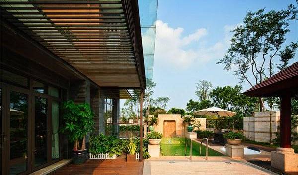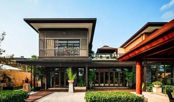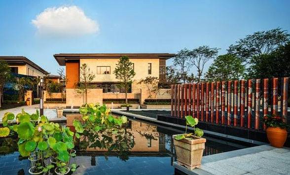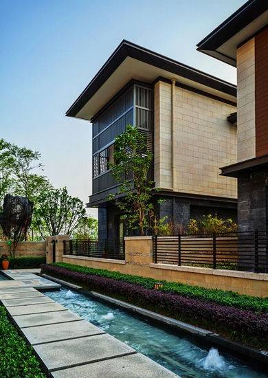 本项目用地地处世界风景名胜峨眉山之麓,“天下名山”牌坊正对面,紧邻峨秀湖景区,拥山观水,地段优越、昭示性强。 峨眉山的山溪和温泉闻名遐迩,规划设计考虑结合周边酒店配套,引山水至小区内部与周围公共水系景观形成统一体系,并在户型设计中加入温泉SPA的养生概念,打造一个具有川西特色的休闲养生会所。本方案设计旨在以国际化、世界化的表达方式营造一种蕴藏传统东方美学的居住意境。通过引入的水景将用地自然的分成了多层及中高层度假公寓区和低层住宅区两大部分。西侧布置为面向峨秀湖的多层及中高层度假公寓,中间及东侧沿水系布置独院住宅。其间为分级设计的水系,主水系将小区分成主要的两大部分,次水系将独院住宅再进行细分,分为一个个小组团,组团内部又有更次一级的水系,争取临水住宅的最大化。
