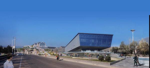 沁水是山西省南部新近发展的一座小城,因独特的山水格局,城市建设形成了“半城山水半城园”风格。沁水的中心由两条河以及汇聚的三角洲组成。项目正位于三角洲端部的一条边上,是整个沁水的第一号商业工程。政府希望本项目成为沁水的城市名片、市民活动的中心。