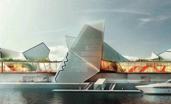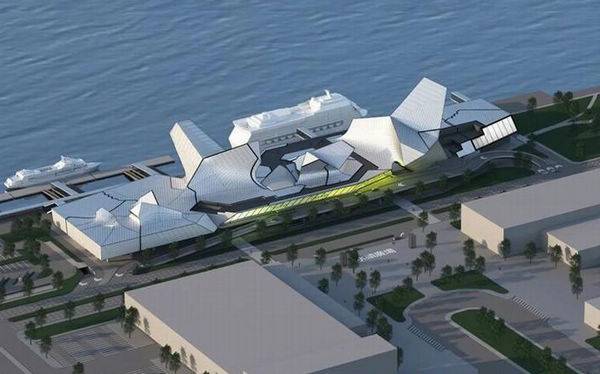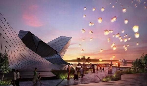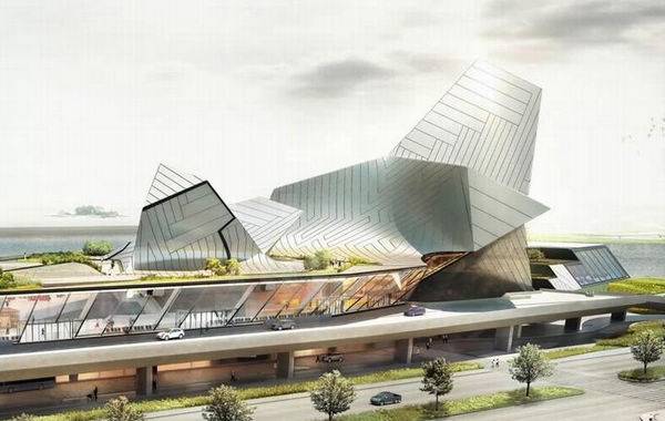 这是由tom wiscombe architecture设计的金门港口客运服务中心方案,获得竞赛二等奖。设计团队设计了一个水晶屋顶造型从地面抬升其的矩形建筑。这个混合使用综合体主要用作渡轮和邮轮停泊的码头,同时配以各种商业、行政和公共项目的设施。这个洛杉矶设计团队从台湾本土文化遗产中获取灵感,同时寻求与新时代的沟通联系,特别是与中国大陆的关系。建筑使用了弯曲的金属和玻璃表皮,形成一条绿色蜿蜒的屋顶长廊,形成动感、具有标志性的造型,与金门典型的燕尾及马鞍峰等几何建筑造型相呼应。此外,该方案的表皮图案与色调都是参照岛上充满活力的建筑环境。
