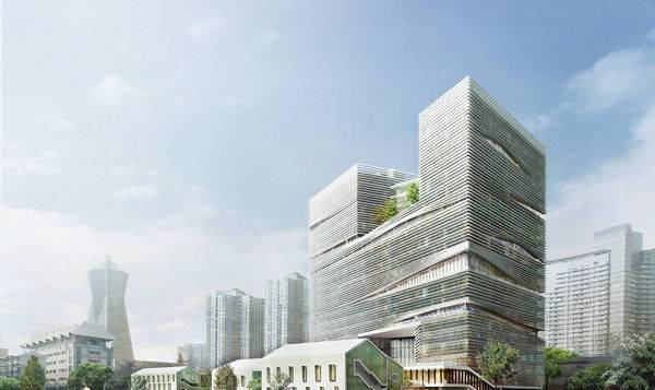 “杭州之角”--浙江印刷集团总部项目是零壹城市应对复杂城市环境挑战的又一充满智慧的力作。项目场地位于杭州市核心城区,场地北面和东面紧邻车速较快的城市主干道及高架桥,西面和南面是市中心的一片旧住宅区,西北面是京杭大运河及市中心地标西湖文化广场。场地离西湖仅1.8公里,70m以上部分能望到湖面。