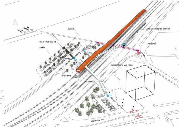 Arhitektuuriburoo PLUSS设计的爱沙尼亚新火车站方案获得的第一名。由爱沙尼亚建筑师组织(UEA),该项目的创造来源于铁路波罗的海项目的竞争,在与政府的共同努力下爱沙尼亚、拉脱维亚和立陶宛连接三个波罗的海国家的一条铁路线。选择PLUSS为赢家,UEA希望不仅为公司的安全委员会,也参与周边地区的规划。