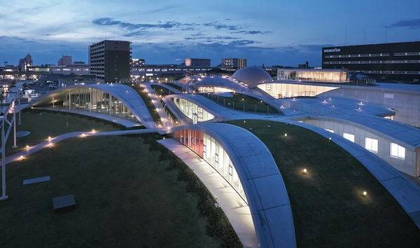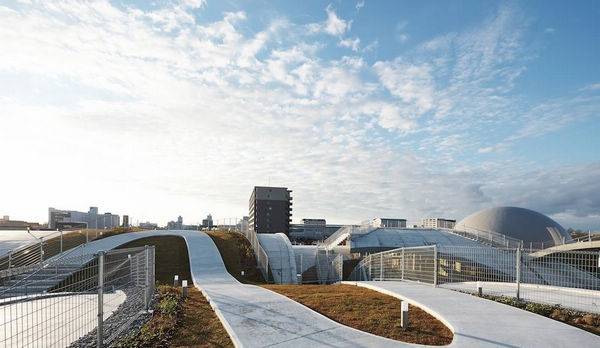 我们赢得了小松市的比赛,石川要设计一个复杂的科学博物馆与交流中心,它建造在前工厂场地上。小松市一直发展作为一个手工制造的工业基地。要求启蒙“继承制造精神”和“孩子们对于这个区域增长的科学的兴趣”,并进一步与其他区域合作。 综合体本身融入了四个低矮的波形建筑物,并在遥远处映衬了远山。科学馆位于这些波形之下,包括一个3D圆顶剧院,科学体验学习中心,工业化的推广综合设施和一个孵化中心。屋顶绿化提供了保温效率,整合建筑与景观成为一个公共的屋顶公园。