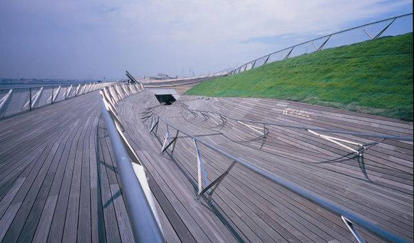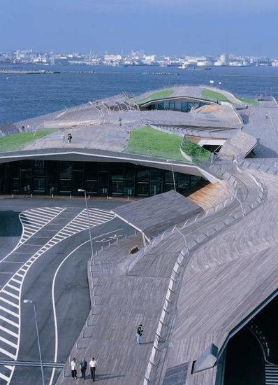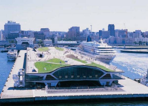 横滨港国际客运中心码头,是1995年国际竞赛的结果,由外交部建筑师(FOA)设计。这是一个未来交通基础设施的代表。其使用了,建筑领域的高科技技术,同时引发了许多人的讨论。 对于现在的建筑竞争非常激烈,Alejandro Zaera Polo和Farshid Moussavi夫妻俩,建立了建筑的终端设计。全国最大的比赛日在日本第二大城市的滨水场地举行,引来了世界各地的660项运动。在建设建筑物时FOA暂时搬迁到工程内部,他们用了八年的时间建造了430米长的建筑和花费了1500万英镑。最终在2002年开放使用,正好是世界杯举行的最后一场比赛。