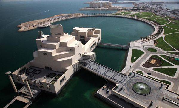新落成的位于卡塔尔多哈的一个人工岛屿上的伊斯兰艺术博物馆,设计来自91岁高龄的贝聿铭,贝聿铭称这个伊斯兰艺术博物馆将是他最后一个大型文化建筑(建筑外部在2006年已完成)。为了表现伊斯兰建筑的本质,贝聿铭在在中东考察了好几个月,研读穆罕默德的理论,亲自到埃及,突尼斯等地采风。由于担心这个博物馆会被周围环境所淹没,他请求卡塔尔的王储为其建立一个独立的岛。 虽然已届高龄,但贝聿铭的创作力却不见减退。建筑主体主要站在波斯湾海上填海造陆的小岛上,远眺就像是一座建在海上的博物馆。从某些角度来看,这种构造似乎单调乏味而又异想天开,但从另外一些角度来看,它好像漂浮在水面上。当人们走近它,整个构造的全部力量开始凸显,其造型更显壮观。