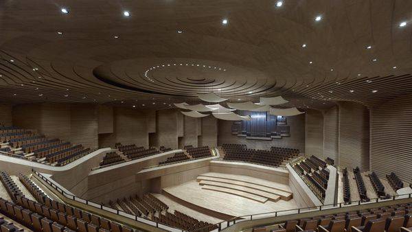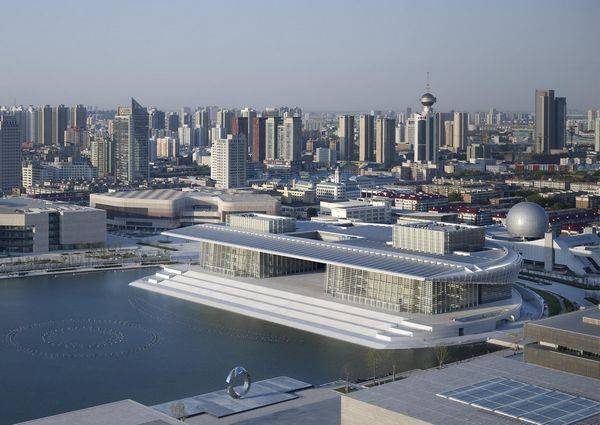 该项目是由gmp Architekten设计的,天津大剧院在新建成的文化公园占据了重要的位置。该建筑的屋顶是圆形的与现有的自然历史博物馆相对应。 大剧院接近广阔的水面其屋顶就像打开的贝壳。歌剧厅,音乐厅和多功能厅,露在水面上就像贝壳上的珍珠一样。宽阔的楼梯连接的石头基础创造了一种城市生活还可以俯瞰湖泊和文化公园广场。避免车辆交通在靠近水域的一侧。陡坡位于北部和南部,而巴士站位于沿住宅丘东部的建筑。所有的内部区域位于基地内,以便实现内部循环通畅。屋顶的设计是一个转型的多个屋檐传统的中国元素,从而定义了一个系统的常见水平层,它创建了一个建筑实体的屋顶,外墙和石材基础。
