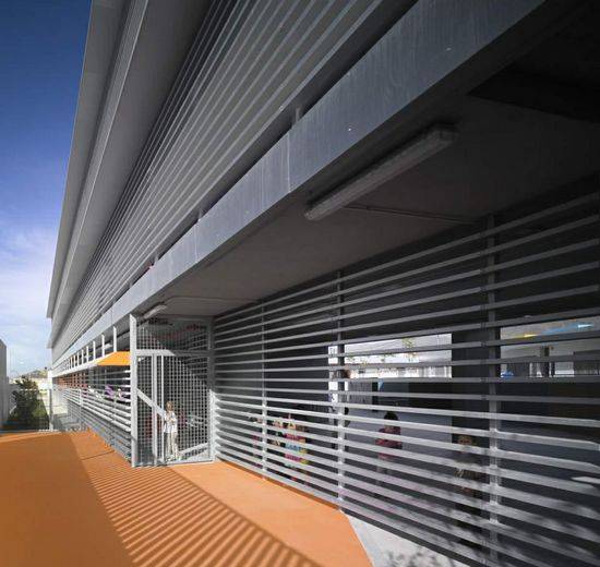 建筑物的植入的目的是释放中央空间,为学生的活动区域,使教学,管理,和互补的空间位于城市条件允许的极限(距离立面)。政府和互补的空间构成北立面,奠定了平行的第二街(南面临海景),而儿童中心是平行的一个的背面(北部边界)。