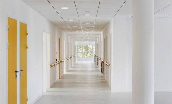 该项目的回应,此外,考虑其他城市,对情节的界限。这保留的南部边界的连续性,在最西点,向天中心的入口的位置。对建筑物的各种主要入口在街上,向西邻接公园:从西南角访问日间护理中心;访问住宅的主要通道,通往大堂和垂直核心,并平行,用木格子分开,在地下室是车库通道和所有其他单元。 地下室包括员工餐厅、更衣室,厨房–连接电梯的办公室和食堂的日托中心和住宅,在上层楼层是:洗衣房,垃圾房,维修室和储存区。与其他层次的内部连接主要是通过服务的核心,虽然就有两个楼梯。