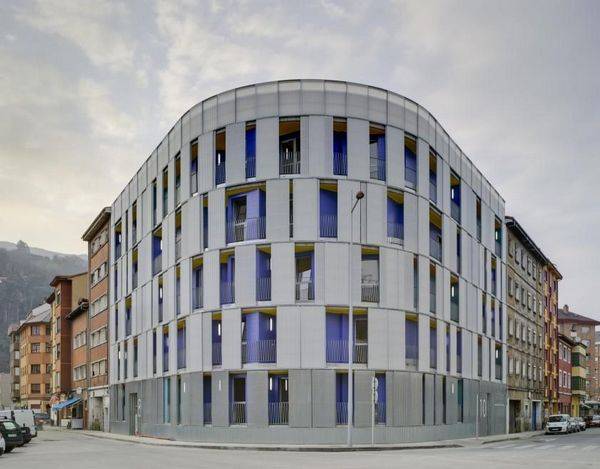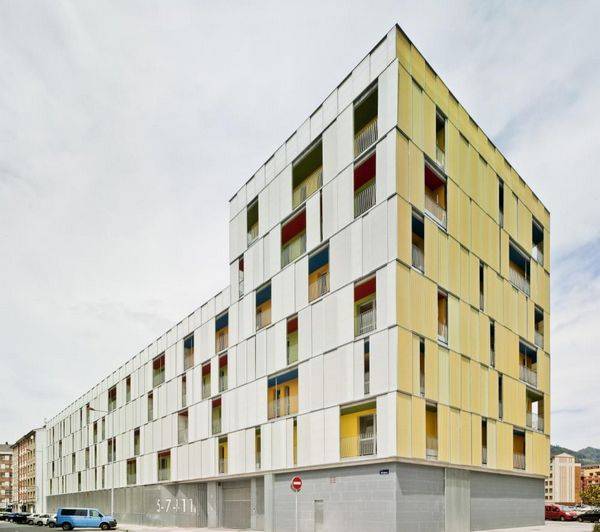 该提案是两个画廊围绕着建筑,结构的存在释放室内住宅空间。机械和潮湿的空间都集中围绕着“技术墙”。内部庭院种有一些树木,帮助保护视野并较少不同住宅的噪音。