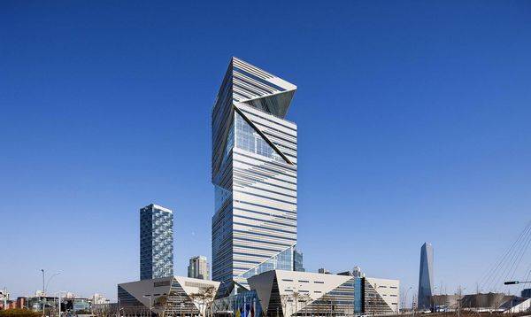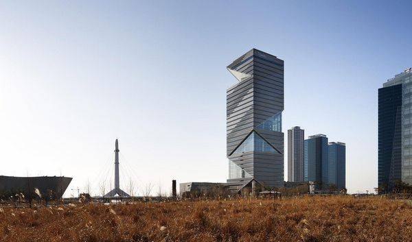 G-Tower位于仁川松岛经济自由区,是一个有象征意义的模型和环保的新政府办公大楼。4个中庭有6层高,25m深的空中花园的反坡特性是建筑物的特征和创意元素。对角线显示了塔立面简单的动态图。中庭,是一个核心生态环境要素,能提高建筑物的保温性能,这33层有着不同的楼层平面布局,为客户提供了各种工作和休息的空间。计划与布局分区规划整合和协调各种程序的独立性。 G-Tower的理念有三要素:仁川经济自由区的三区,三个客户,就是仁川经济自由区总部,联合国办事处及租赁的办公区和三个体积的办公大楼,文化和公共服务。33层的塔楼垂直阵列和旋转的三棱锥给用户提供各种社区的内部空间的不同体验。