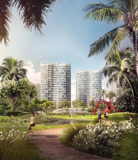 作为迈阿密海滨椰树林开发项目的一部分,OMA建筑事务所设计了两栋细长的弧形Park Grove公寓。最初,该事务所设计的由六座细长而又高大的建筑物组成的方案赢得了这次设计比赛。后来,这一项目被修改成为两栋建筑物。这两栋建筑物的造型均为中间向内凹进的椭圆。两座建筑物均为混凝土结构,外墙敷设玻璃幕墙。这样的设计方案能够为居住者们提供迈阿密比斯坎湾宏大的景色。 通过完全采用透明的室外覆盖材料,公寓套房的布局能够为居住者们提供尽可能宽阔的海洋视角。此外,室外的大阳台与室内空间通过滑动玻璃门连接。该项目由Terra Group与Related Group携手开发,将于2015年正式破土动工。