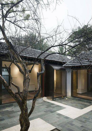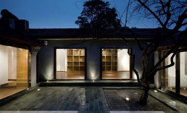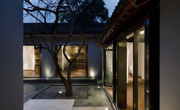 该项目在北京官书院胡同,是一个小四合院的改造,位于著名的永和西藏寺庙和历史悠久的IIm- perial学院之间。业主是一个来自上海的艺术品收藏家,他的愿望是改造这个小小的四合院,让它变成一个上海风格的陶瓷展兰会所。设计主要从两个方面入手:一方面,在原四合院的框架中,填充一系列铜镀的不锈钢窗户和镶木地板,从而形成传统与现代的结合与对比。另一方面,重新建立江南庭院的园林景象。 作为主创设计师,以及一位建筑师,刘宇扬首要考虑的就是建筑结构。众所周知,四合院的梁架结构是典型的中国式结构,而四合院独有的“回”字型空间序列是否会给刘宇扬带来一些困扰?作为中国年青一代的杰出建筑师,这不是问题。他保留了原有的圆柱形梁架结构,斑驳的木头和精致的地板交相呼应。“回”字型结构成为了展示空间的最好空间序列,展示讲究浏览线的通畅,“回”字不正是一个圈形结构吗?四合院外就是窄窄的胡同,细长狭小,刘宇扬运用了开阔和通透的设计手法,作为对外界环境的回应,通过大小空间的对比,使人感官上觉得他所设计的四合院是很宽广的。