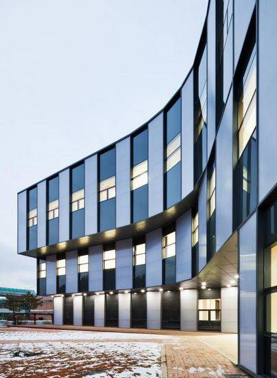 艺术和工艺工作室坐落在韩国国立大学的文化遗产,包括三个主要项目:画廊、工作室和学生宿舍。该项目面临着三个不同的环境:山脉、校园和茂密生长的芦苇。相应的也有三个编程区与这些环境,集结是由层压三层线性卷面临不同的视图,从而形成三个“翼”。使用聚碳酸酯为主要材料,三种不同外观设计被用来强调程序性和环境的关系。