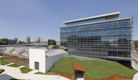 位于米兰的西北地区,La Forgiatura是意大利多年卓越的国际冶金工业。它的重建面积比现有14000平方米的建筑,增加了10000平方米,共计7楼办公室和展厅空间。这是一个复杂的属性,不同的用途,在B级认证,所有服务的一个常见的空调风系统,楼宇管理系统,同时允许不同的应用程序的优化管理。 10000平方米的面积,通过拆除现有的部分,利用最大的Raimondi建筑,新建筑传播超过8层,其中两个是嵌入在一个人造山和其他六个都挂在一个桁架,沿着周边的最后两个水平。