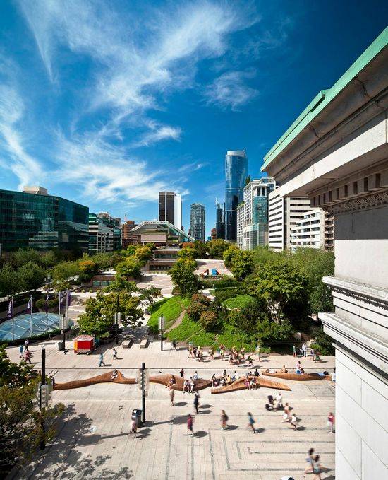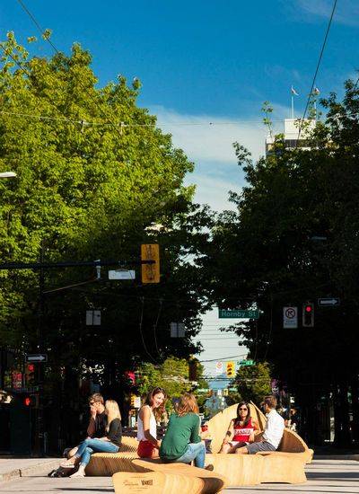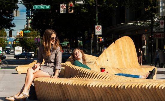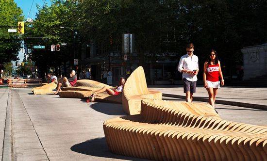 该设施位于温哥华市的罗布森街,蜿蜒起伏的形状成为了街道的一个标志性设施。“城市珊瑚礁”可提供公众就坐,放松以及玩耍的雕塑,由普通街道转化成充满活力的步行空间。 这个获奖设计被称为“珊瑚礁”它源于两种观点的竞赛简报。首先,是温哥华的城市活力的接合概念。它经常被认为在温哥华是一个天然的环境和风景名胜区的设施,丰富的城市结构和文化的存在的城市想强调通过罗布森归来的竞争。第二,是竞争的潜在主题:连接。