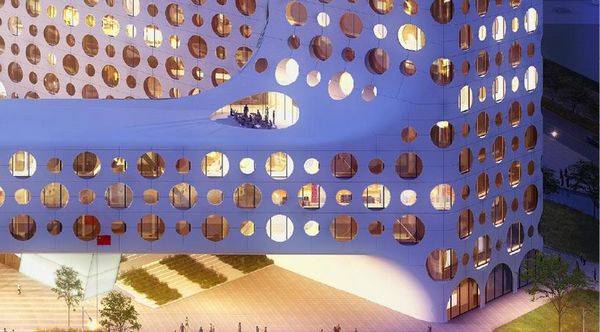 这是由JDS architects设计的青岛open hand办公楼,坐落于中国东海岸。这个大型的建筑项目分两个阶段完成,形状就是两个张开的手掌,“手掌”围合出一个大型开放公共空间,既形成裙楼的屋顶,又提供眺望大海的视野。 考虑到场地的城市复杂性,该项目第一阶段建设了180000平方米的商业办公空间,位于两个外形独特的手掌形建筑内。建筑首层,宽敞的公共广场吸引客人来到场地,建筑地下是停车场。