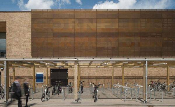 Cornelius Vermuyden学校是一所11-16岁男女同校的学校,约有900名学生,在宽阔平坦的Canvey岛上。学校主要是新建的,但现有的大厅已经被合并和重新塑造成设计技术和艺术中心。一个中央“画廊”链接教学群楼、体育馆和LRC,扩大本地创建宽敞的入口大厅、餐厅、艺术品展示空间。丰富的外部环境为娱乐区和学习区之间形成的过渡空间。外部材料颜色庄重且奔放,包括黄色的主体砖墙、多孔青铜阳极氧化铝和未经处理的木材。